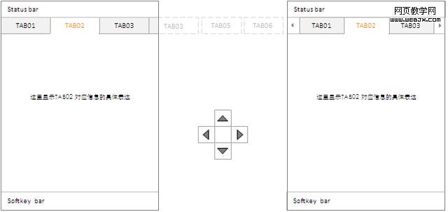 针对非触摸硬键操作手机,过多的TAB可以采用上图两种方式来表达: