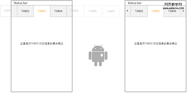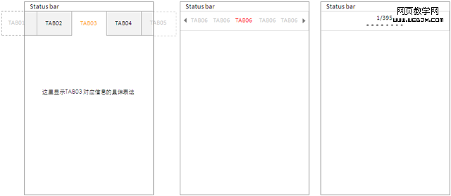 还有一种方式,这里没有涉及到,就是点击箭头滚动一组TAB的形式,鉴于不同平台的能力,这种方式在Window Mobile更为常见。