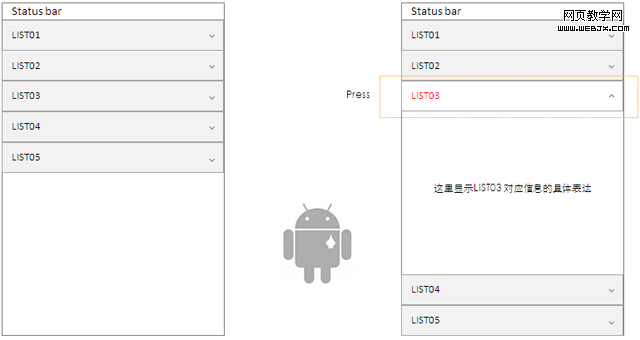 手风琴式是针对两层信息界面表达的另外一种形式,但表达出来两层信息结构中的第二层信息有明显的连贯性,内容也有一定的限制。
