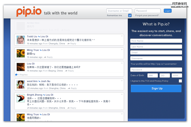 这种设计是把注册表单直接集成到首页上,而非传统的新页面跳转,节省了用户的操作成本,功能逻辑也更为清晰(如最近很火的Pip.io)。这是否是未来一段时间内的注册系统设计趋势,还有待观察,至少现在看来很值得借鉴。