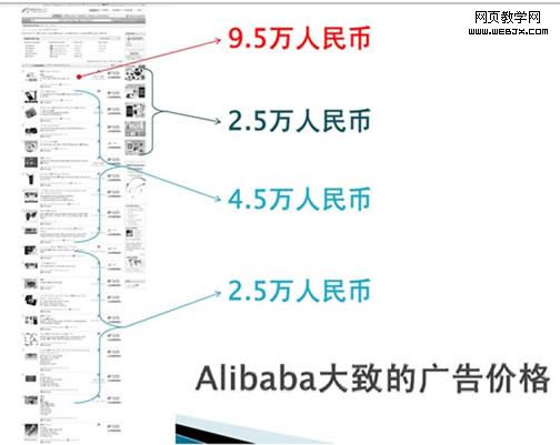 上图反映了阿里巴巴网站大致的广告价格。