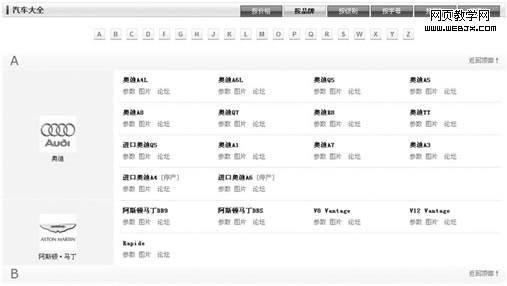 比如汽车频道按字母排序的例子: