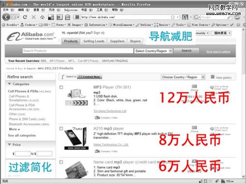 导航会给我们带来哪些好处?导航不光只是提供信息获取的途径,它的设计优劣会直接影响到整个公司财政收入。下面我们看一个例子(以下内容来自alibaba李凡的《设计师的商业意识》):