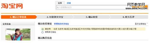 如下图,在此页面可以限制淘宝买家按线性结构完成购买流程。上方的1,2,3,4的步骤很好的引导用户一步一步完成任务,并告知用户所在流程中的位置。