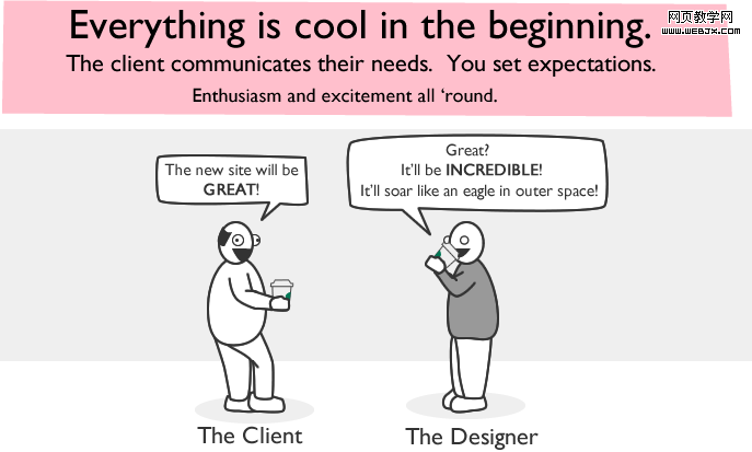 才开始的时候一切都很好。客户提出需求,你也充满期望、热情高涨、精神亢奋……。