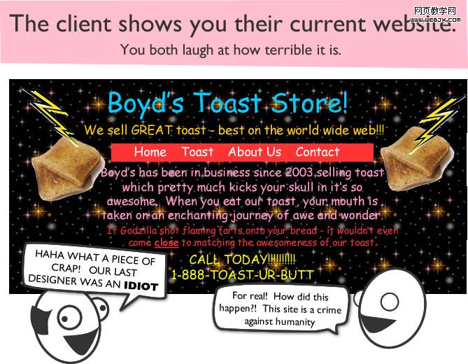 客户让你看现在的网站。大家都嘲笑它简直是个“极品”。