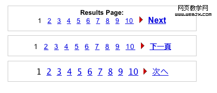 - 单页链接应该包含一组最多10页的链接.如果结果页少了,那么仅显示可用页面的单页链接