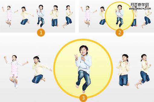图3不仅添加圆形背景框,再区分人物大小,主次分明,焦点突出,画面活跃立体。