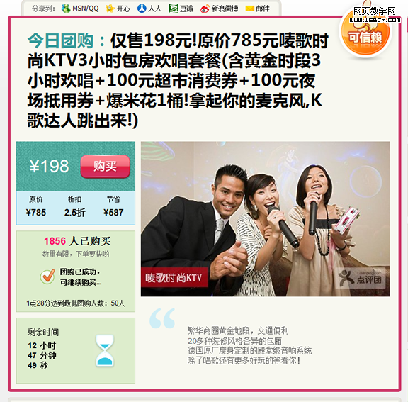 Wong:点击了链接,看到是一个团购信息,KTV的消费券外加一些赠品,是我熟悉的一个网站;
