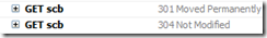 对于以目录形式访问的HTTP链接,很多人都会忽略链接最后是否带’/’,假如你的服务器对此是区别对待的话,那么你也需要注意,这其中很可能隐藏了301跳转,增加了多余请求。具体参见下图,其中第一个链接是以无’/’结尾的方式访问的,于是服务器有了一次跳转。
