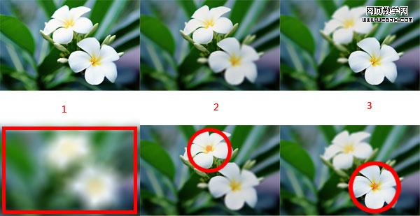 人们用视觉获取环境中的信息,对你注意的周围都会是模糊的,你视线集中的中心点是最清晰的。第一张,视觉上呈现这样的状态是,视线上没有集中,整体模糊,是成方形的视觉框架。第二张和第三张,图中的两朵花在图形中是最漂亮的亮点,漂亮的东西会引人注意,你会注意到上一朵或则下一朵,注意任何一朵花的时候,眼球集中点会以圆的形状向外逐渐模糊,最中心点就是焦点。圆形作为设计中的元素的时候,自然更加的适应视觉上的感知。