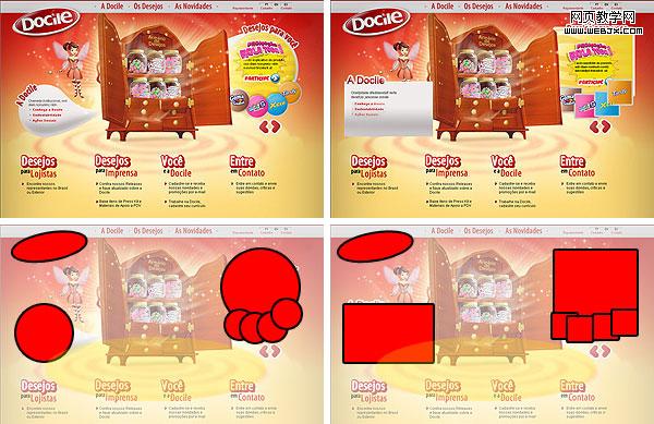 富有节奏的设计,连贯的圆形元素组合,网站的主体富有节奏的形状,营造了网站活泼的气氛。方形的组合结构使得网站变得严谨许多。