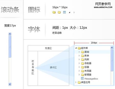 滚动条:17px 图标:16px 文字(中文宋体):11px 文字间距:1px