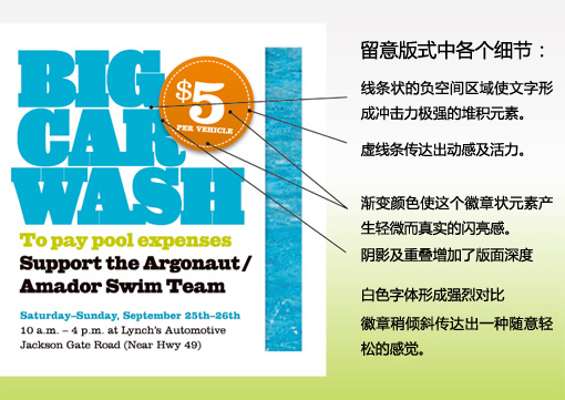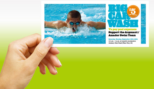 没有人会对它视而不见:这张洗车券是一般门票尺寸的两倍之大,设计起来也很容易,从视觉上也非常能吸引有兴趣的消费者。大图片及大标题使这张洗车券产生一张海报的视觉效果,效果当然不错。