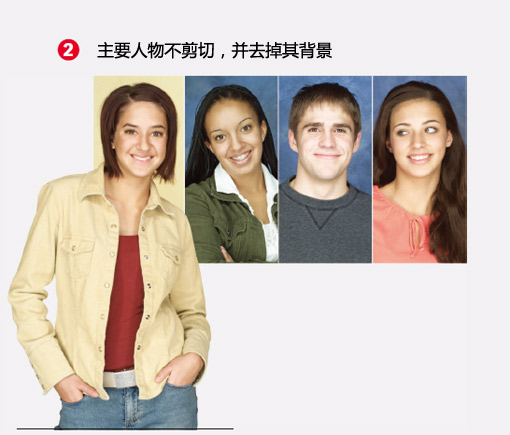 一旦定下各人的尺寸后,最重要的第一个人物不要剪切,但去掉其身后的背景。