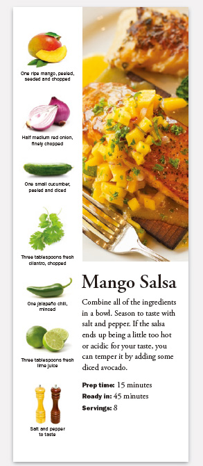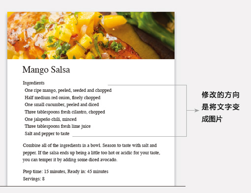 你如何设计一张与烹饪配方相关的宣传卡片?不要将那些用料简单地用文字列出,显示它们!这个方式适用于任何指引性的设计项目。