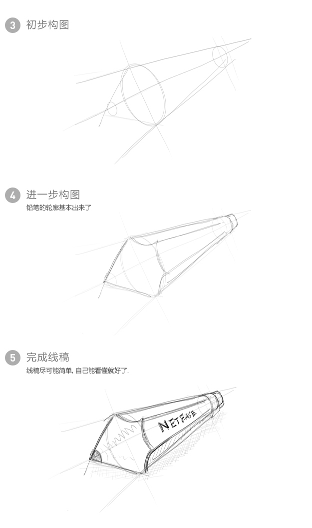 嗯,就先拿最后这支[铅笔]为例(比较简单易分析)。首先,弄明白这图标用在哪?也就是先弄清楚需求——弄一支可以当冲浪板的铅笔。好了,一切废话到此终止。
