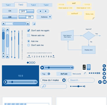 这是一套用于原型草图设计的 UI 库,包含的元素有表单,图标,指示器,反馈消息,工具提示,导航元素,图片框,内嵌视频,滑动条以及广告 Banner,包括 Illustrator 和 SVG 两种矢量格式。
