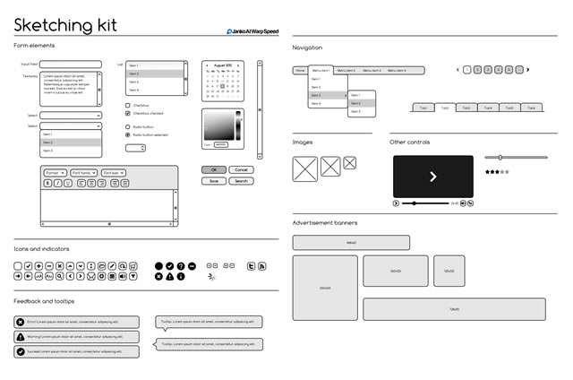 Sketching & Wireframing Kit (.ai, .eps, .pdf & .svg)