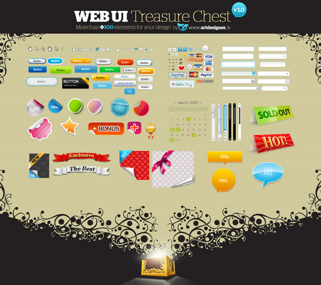 非常值得收藏的 Web 元素库,卷边效果很漂亮。
