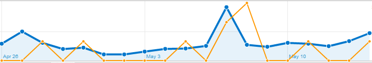 当然,你可能会说这种用户区分的方法不准确,这类用户不一定就是迷失用户,也有可能他们确实找到并浏览了具体内容,但因为内容不够吸引人或者其他原因而马上离开了该页面。所以这里用高级群组划分出来的这类Visits的数量不能看作是迷失用户的一个绝对数值,我们只能认为里面的大部分Visits都是迷失用户,而不排除存在某些另类。所以更合理的方法是通过计算这类Visits占网站总Visits的比例情况来分析网站的信息架构到底是否合理,我们可以在Google Analytics上面选取网站的All Visits和Lost Visits进行比例和趋势的比较,如下图: