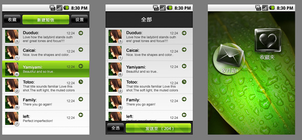 从这种注重风格结合的整体界面设计方式,包含了交互及相应界面规格逻辑。而实际在Android及Iphone界面开发时,需要我们设计师更多的研读其系统交互的逻辑及匹配,创意性的突破需要更慎重才能出彩。比如iphone的右翻页式新增条目方式,你不可能做大的改动,或者换成S60的底栏推出小窗口式,因为你还要考虑触摸屏手机虚拟键盘的存放。在手机互联网高速布局的时代,交互与风格更加注重配合,以匹配产品敏捷式开发,要尽量一次定位,深度设计,适合广度铺开的设计战略。这种设计及开发模式需求下,我们会更加的专业化与成熟化,也会提高UCD行业的整体纯净度。某年某月在一阵忙碌过后,有一天翻出了一堆堆的旧方案积累,也许那时您能够欣然而笑,相信那会是充满收获的喜悦之笑。