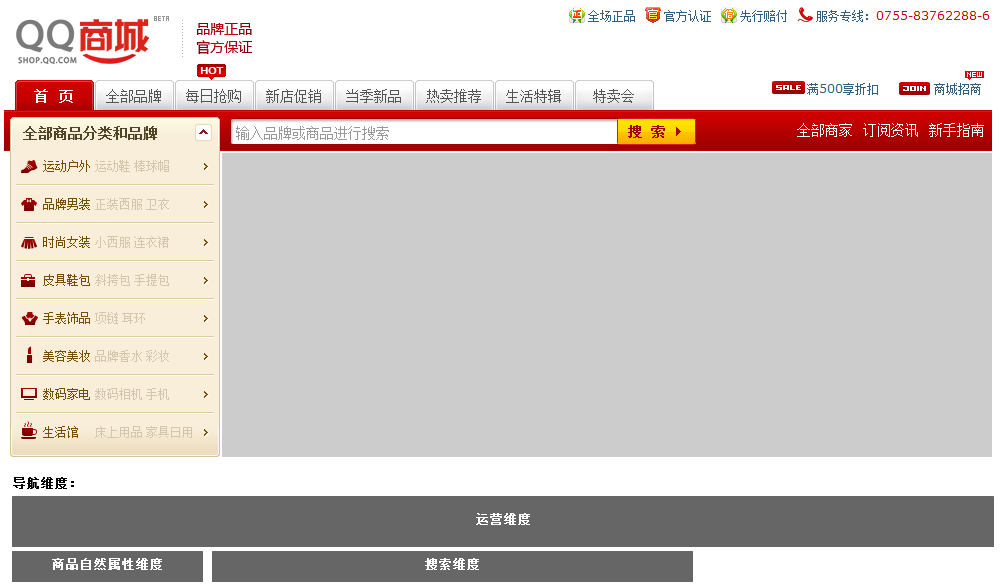 以QQ商城为例:QQ商城的多维度导航主要分为2个维度: