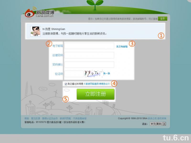 ① 明确表达这个页面的目的,某人邀请了你注册新浪微博,再用一句话说新浪微博的主要作用。