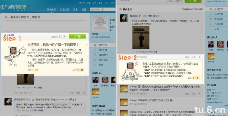 微博的形式我觉得已经做得很明白,但腾讯微博觉得用户太小白,还是要再教一教,所以就做了提示。