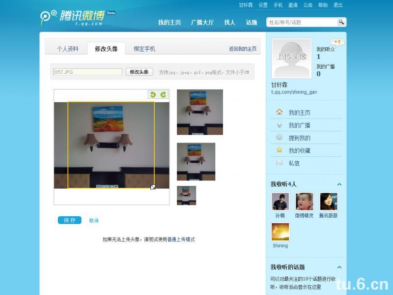 和新浪微博一样的模式,也有一样的问题:1、不支持非正方形图(其实我只要你能支持把原图放大缩小就可以了,我宁可要填白,我也不要缺图);2、上传没有进度条。