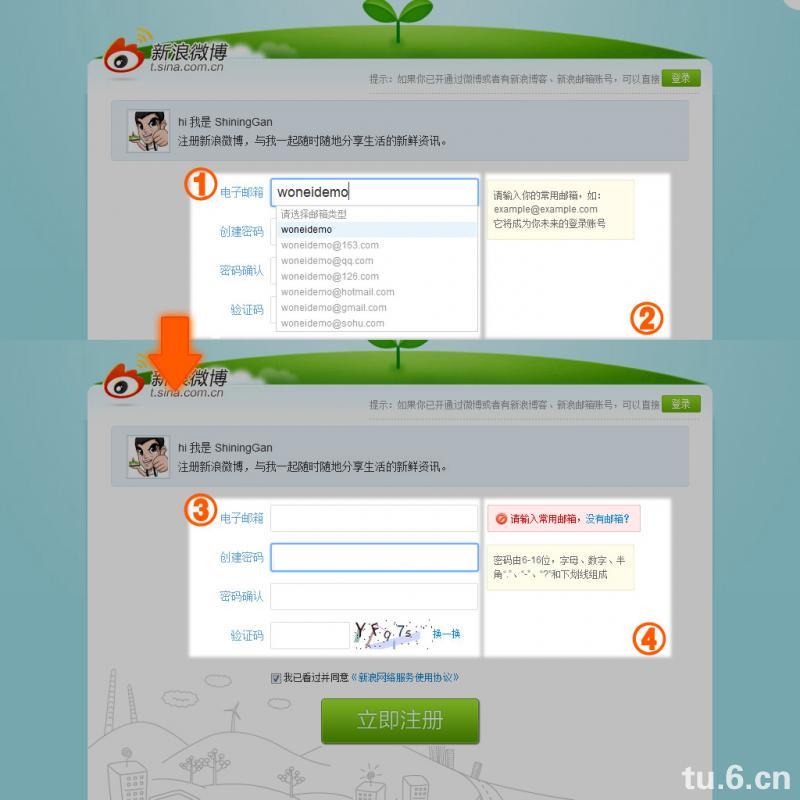 由于腾讯微博暂时只能通过邀请获得,所以我对比的流程均为邀请注册。