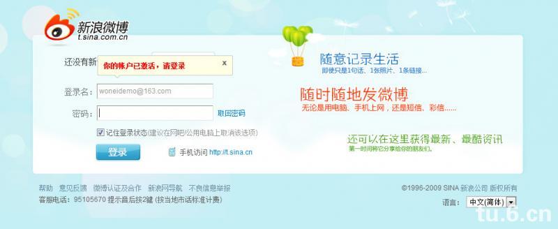 由于腾讯微博与QQ号绑定,这省却了注册流程,只需要进入邀请链接后登录激活即可。