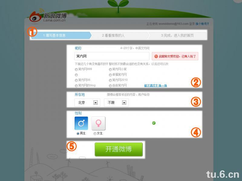 ⑤ 的提示让人明白登录的作用:激活微博。
