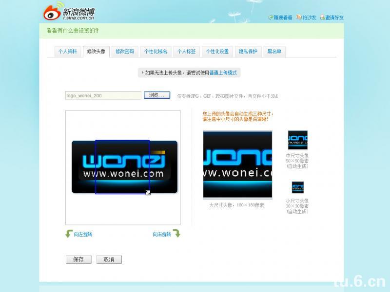 2)上传图片的过程是没有进度条的,只有一个提示,而且这提示还时好时坏,比如我已经上传了一张图,发现不合适,换了一张传,这时候我发现那个提示不存在了,给我的只是一个区域性白屏(现在WONEI的LOGO的原图的位置变成白屏)。