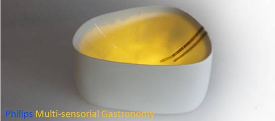 愉悦往往是作为用户需求升级的表现。也就是说,这种需求不是作为用户的最基本需求,但却可以提高用户的体验,使得用户从中获得更加愉悦的心情。从一定程度上,满足用户追求更加愉悦和更高生活品质的需求,在产品设计时也常常作为重要的因素被考虑的。飞利浦在2009年设计了一种多传感器的烹饪碗(Multi-sensorial Gastronomy)[8]。这种碗可以通过光学传感器感知食物的颜色,并且使得盘面的色彩根据食物的颜色而进行搭配,让使用者在用餐的时候,获得更加愉悦的心情,从而提高了用户的生活品质。