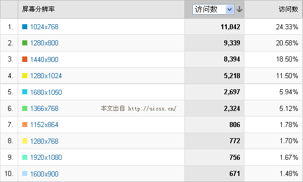 我们先分析一下目标网站的用户屏幕分辨率情况: