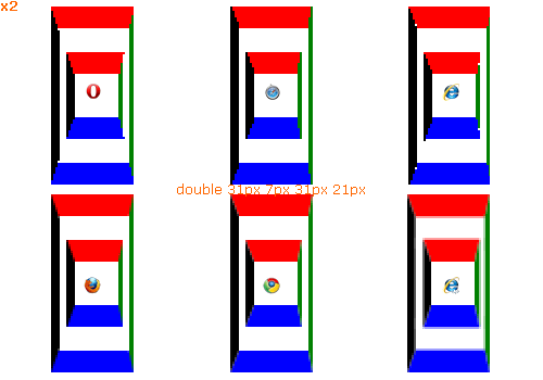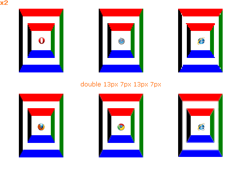 下面就是双线了,这又出了一个问题,就是ie9的双线是糊的…由于用的是4条等宽边框,其它看起来似乎都不错。