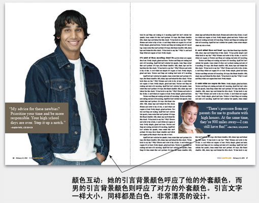 引言可以放在图片上,图片也可以放在引言里。留意这两个引言的同一性,文字区域大小一样,均处于同一水平线,均与外面形成出血位。