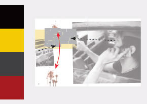 留意警察的车祸现场画面及司机的视线强化了引言的视觉张力。喷溅的鲜血由上至下引导读者的视线。