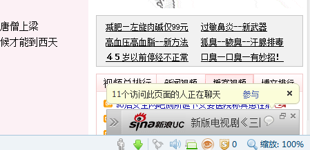 在访问新浪新闻时候,右下角会有一个浮动窗的标题栏。说要不要跟一起看这个页面的人聊聊。