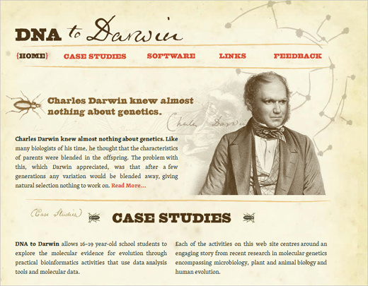 DNA to Darwin : 这个站点的字体也全是衬线字体,skolar-1,skolar-2, Georgia, Times, serif。