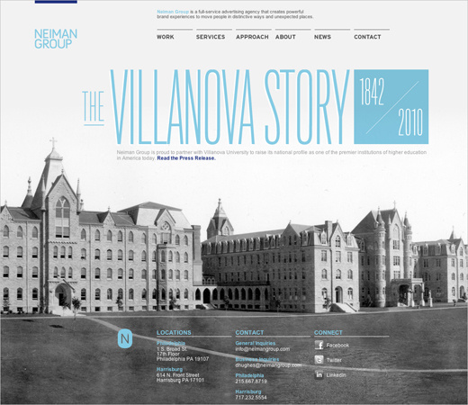 Neiman Group : 将企业色融合到标题,导航文字中,使用的字体很纤细,为页面制造出某种气氛。