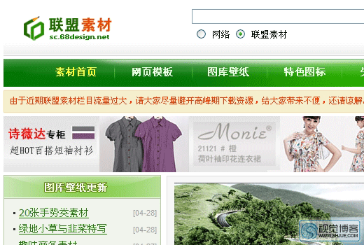 网站简评:清爽、时尚是网站的特色,需要登录后才能下载,有的素材下载需要积分。