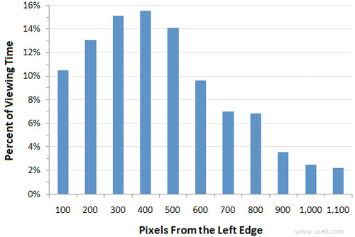 PS: ConversionVoodoo提到了一个重点,Nielsen的测试用的是固定宽度的1024*768的页面,可能这样并没有反应出网络上的主流用户,同时测试的焦点是”内容站”,不一定是电子商务的页面.但是这个研究可能仍然会让你有一个新的方向:试着将call to action(call to action是一类按钮的总称)和网站上其他的重要元素放到左边,而不再放到右边,并且试试是否可以提高转化率.