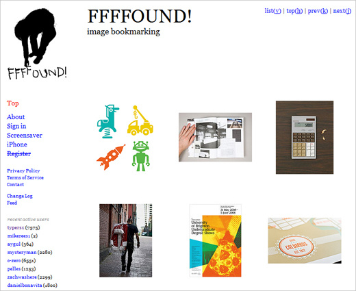 FFFFound! : 最早的图片书签网站之一,按 h 键返回页面顶部,按 v 改变视图,同样 j 和 k 表示前进和后退。