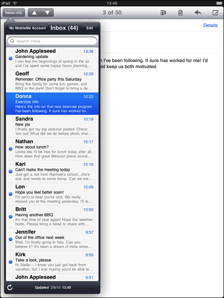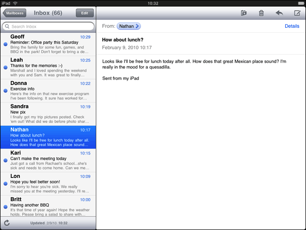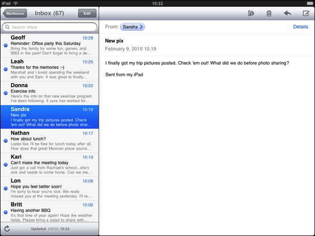 与iPhone程序不同,iPad的工具栏在顶部,iPad宽大屏幕可以显示工具栏中的所有功能。