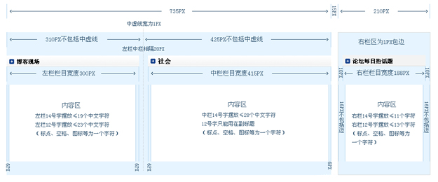 布局仍然是传统三栏目模式,但是这次改版把中栏调整为主题内容栏,比较符合国内网络用户的中栏浏览、阅读习惯。三栏从上至下通栏整齐,方便阅读,在阅读中栏的同时可以兼顾左右边栏的内容。而改版前的左栏为主题内容栏,用户阅读时最多只能延伸到中栏,右栏的阅读点击非常低。