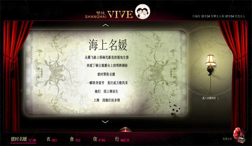 Shanghai Vive 是一个老上海化妆品品牌,现在被重新包装上市成为高端日化用品,该站点大量使用 Flash 以展示优雅和高尚的生活。