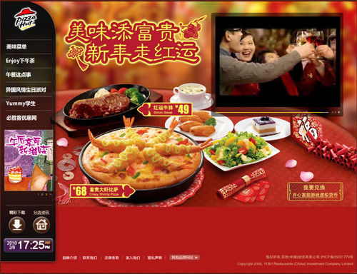在讲到文化差异时,Pizza Hut China 是我喜欢用到的一个例子,整站体现浓浓的中国味,从配色,到家庭主题。暖红加黄是中国节庆的颜色,而家庭餐在中国很受重视。