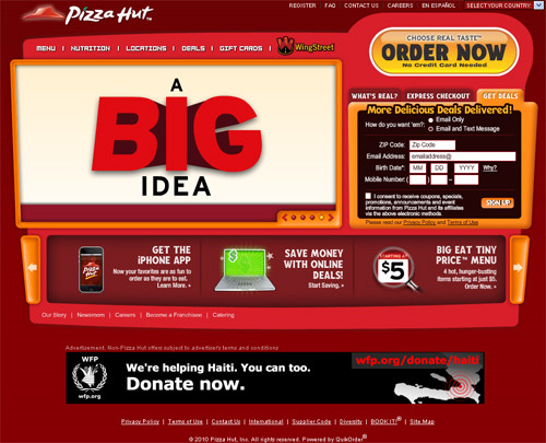 相反,Pizza Hut US 则强调快餐和在线订购,红色仍然是必胜客的主题色,但相比中国的暖红,显得更硬,更暗,更冷。